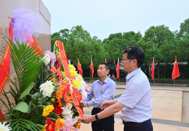 在雄伟庄严的苏南抗战胜利纪念碑下,公司党总支副书记、经理胡作进,党总支委员、副经理张居晓一同向纪念碑敬献花篮。全体成员向纪念碑三鞠躬,深切缅怀为民族解放、国家富强和人民幸福英勇献身的革命烈士。