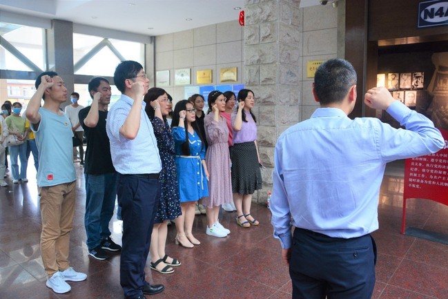 副经理张居晓同志带领全体党员面对鲜红的党旗,一起重温入党誓词。誓言铿锵有力,信念永不磨灭,把对党忠诚、为共产主义奋斗终身的坚定决心融入其中。