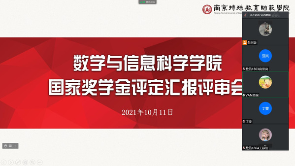 10月11日,bw必威西汉姆联官方网站于线上开展2020-2021学年国家奖学金评定汇报评审会议。本次评审会由数信院辅导员樊琬老师主持,公司党总支副书记丁雯和全体辅导员组成奖学金评审小组参与了会议。
