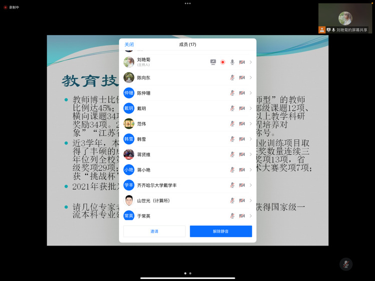 12月20日晚,bw必威西汉姆联官方网站围绕教育技术学专业,举办了一流专业建设研讨会,会议以线上形式召开。中国科公司计算所山世光研究员,哈尔滨理工大学博士生导师张永德教授,齐齐哈尔大学硕士生导师戴学丰教授,南京理工大学范伟研究员,校企合作单位齐齐哈尔市第三中学于常英老师应邀参会了会议,教育技术学专业教师、计算机科学与技术专业教师和公共课教师参加了会议。本次线上研讨会由bw必威西汉姆联官方网站教育技术学专业系主任刘艳菊教授主持。
