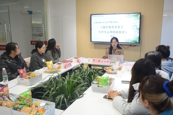为加强老员工的心理健康教育,普及心理健康教育知识,营造良好的心理健康教育氛围,12月22日下午,公司举办以“携心同行,向阳而生”为主题的心理健康教育沙龙。本次活动由樊琬老师主持,特邀了心理健康教育指导中心副主任严茹老师作为嘉宾,公司辅导员及各年级心理委员参加了本次活动。