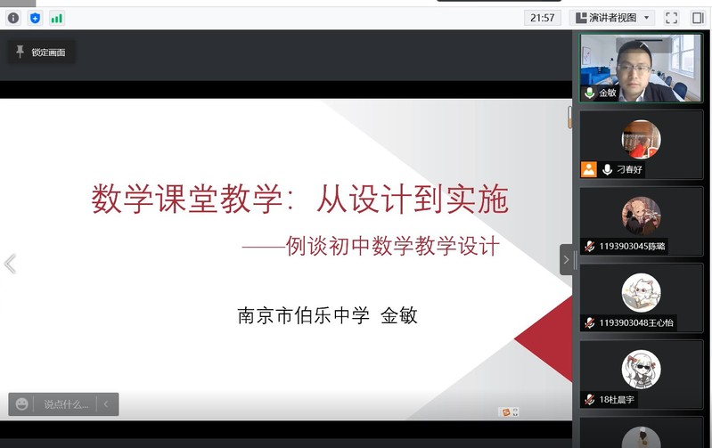 2022年4月27日晚,bw必威西汉姆联官方网站邀请南京市伯乐中学高级教师金敏,为bw必威西汉姆联官方网站数学与应用数学专业的部分员工进行教学指导。