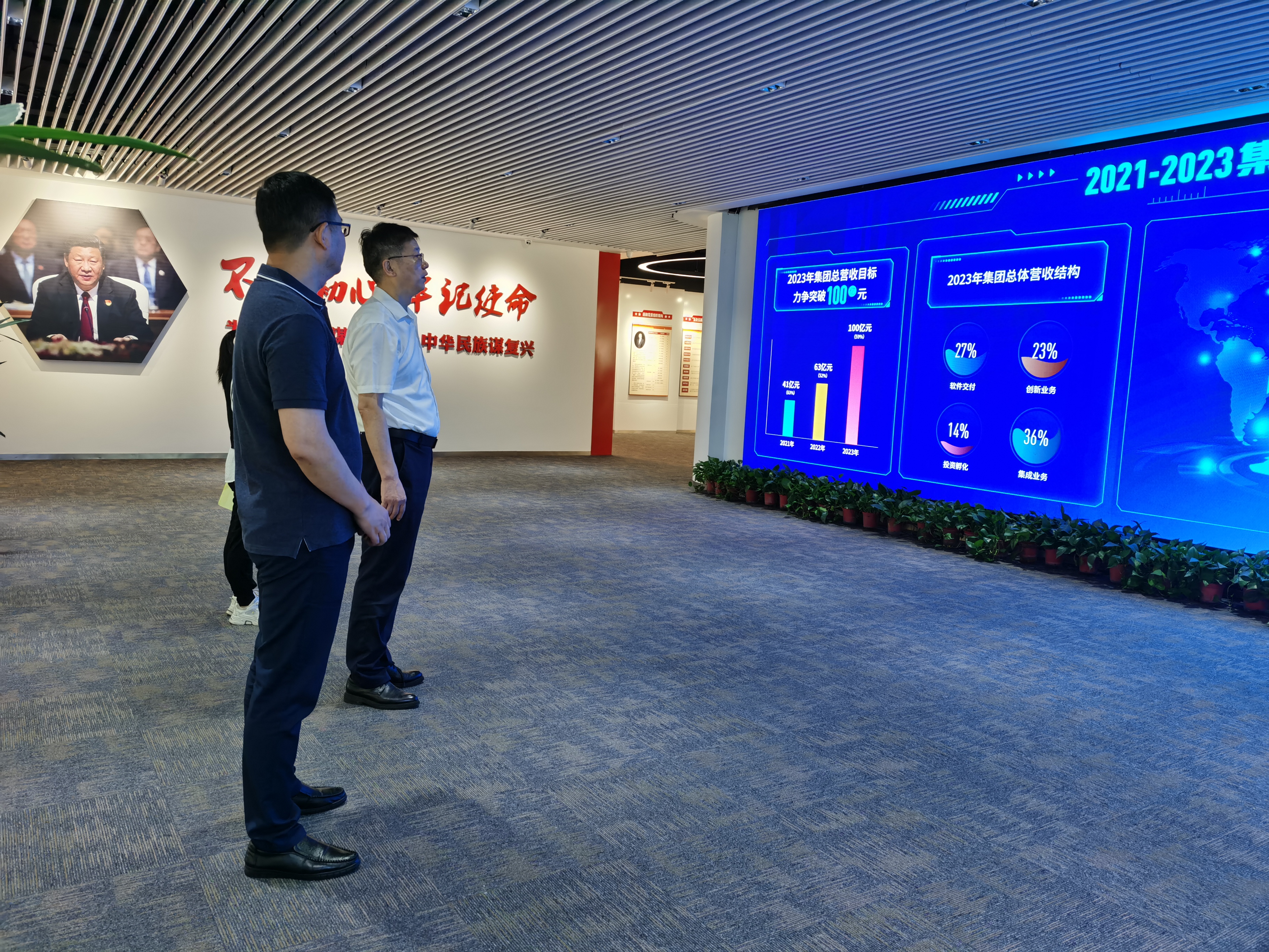 在参观过程中,姜国庆向胡作进经理详细介绍了润和软件的产业发展、战略布局,以及在业务领域方面的创新研发成果与落地产品。
