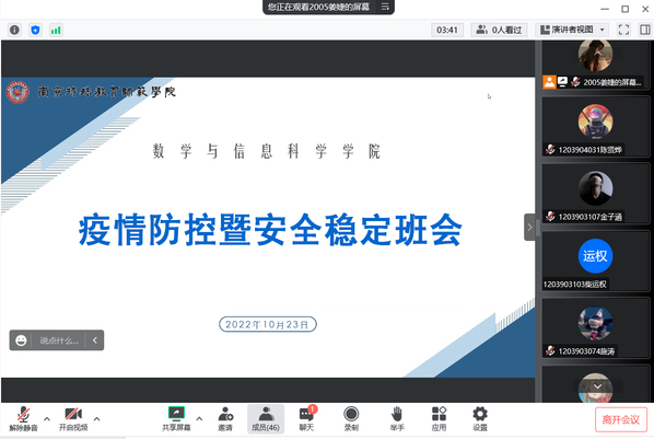 会上,辅导员向各班同学分析了当前疫情防控严峻形势、传达了公司防控管理措施,解读了《bw必威西汉姆联官方网站关于进一步加强员工疫情防控工作的通知》,重点强调了实习、走读员工疫情防控期间的管理,引导同学们深刻认识疫情防控和校园安全的复杂性、严峻性、艰巨性,充分认识外部环境的不稳定性、不确定性、不安全性,并结合当前疫情防控实际情况向同学们提出要求,一是加强政治学习,不断提高政治素养,在党的二十大召开之际,通过多种途径学习深刻领会报告精神,用党的最新理论成果武装头脑。二是要思想上要保持清醒警觉,克服松懈思想、侥幸心理,严格落实防疫相关政策要求;三是调节身心,健康生活,号召同学们利用课余时间进行适当体育锻炼,合理规划作息时间,正视疫情防控下的心理问题,学会情绪管理,保持身心健康;四是身体力行、爱校荣校,主动了解疫情防控要求,客观辩证看待问题,不在网上发表不当言论,积极参加志愿活动,配合防疫工作,勇于担当,争当新时代好青年。