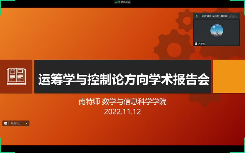 蔡邢菊教授开展了题目为“A balanced Douglas-Rachford splitting algorithm for convex minimization”的学术报告。她介绍了Douglas-Rachford算法,该算法是解决包含问题的一种经典有效的分割方法。最近,针对单调包含提出了一种自适应Douglas-Rachford分裂算法,该算法允许一个算子是弱单调的。将自适应Douglas-Rachford分裂方法(ADRSM)的思想应用于具有抽象约束的可微凸优化问题,得到了更有吸引力的结果。在数值实验中,将算法与其他常用算法进行了比较,验证了算法的有效性。