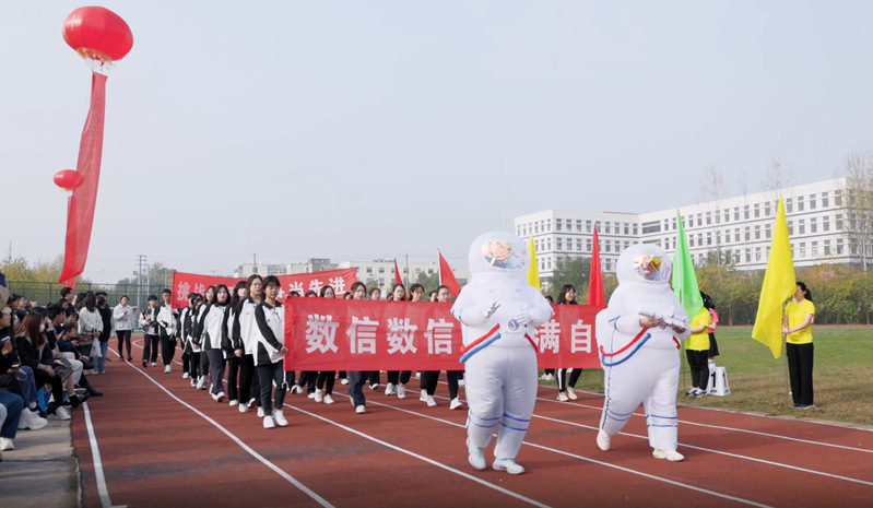 在国旗队、彩旗队、鲜花队、裁判员方阵的带领下、数信公司代表队迈着矫健的步伐,精神抖擞走过主席台进行体育文化展演,尽显数信学子昂扬向上的精神风貌。