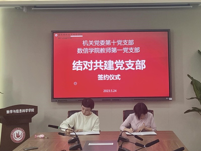 会议伊始,双方党支部书记简单介绍了各自所在党支部的基本情况,双方都表达了结对共建的良好愿望,希望在以后的共建活动中能够集思广益,开创“资源共享、优势互补、互相促进、共同提高、打造品牌”的党建工作新格局。随后两位党支部书记作为代表签署了共建合作协议,两个党支部的成员共同拍照留念。签约仪式后,机关党委第十党支部张正娟老师向数信院老师展示了公司最近刚上线的“智慧报账”的操作方法,及时解答了老师对于智慧报账的疑问,加强了两个支部间的交流。