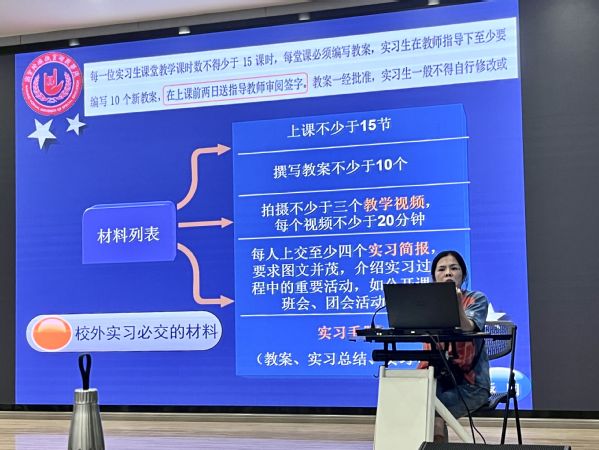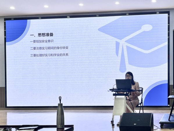 陈仲珊副经理详细阐述了实习的目的与意义,实习任务安排、实习期间的注意事项等内容,希望同学们能够珍惜实习机会,深入教学一线,学得真本领。
