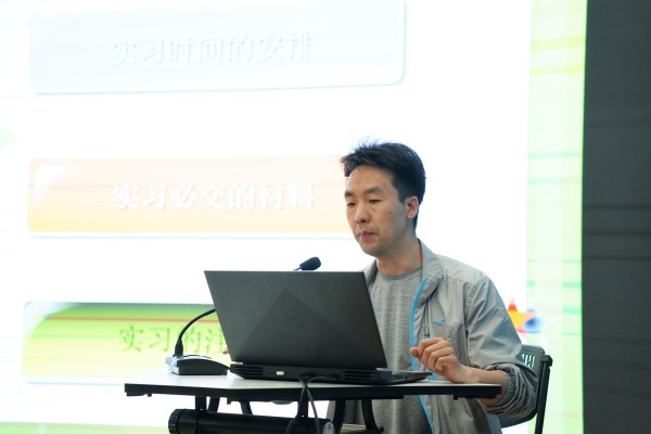 会议伊始,蒋贤维老师明确了实习要求并做实习动员。蒋老师在讲话中阐述了实习的目的以及意义,强调了实习对于同学们的重要性;同时告知大家毕业实习是教学环节的重要组成部分,是对同学们所学知识及其综合应用能力的一次全面检验,也是大家积累初步工作经验的宝贵学习环节,希望同学们要珍惜机会,结合就业岗位,以积极认真的态度参加实习。此外,蒋老师还针对实习报告的相关要求做出提醒,一方面要以务实的态度按规矩落实好毕业实习报告的撰写工作,运用好所学基础理论知识并结合自身的实习实际,进行深入的分析和总结,切实反映出实习单位的基本情况及本人实习的情况、体会和感悟;另一方面要按归档要求,做好实习报告整理和装订的前期准备工作。