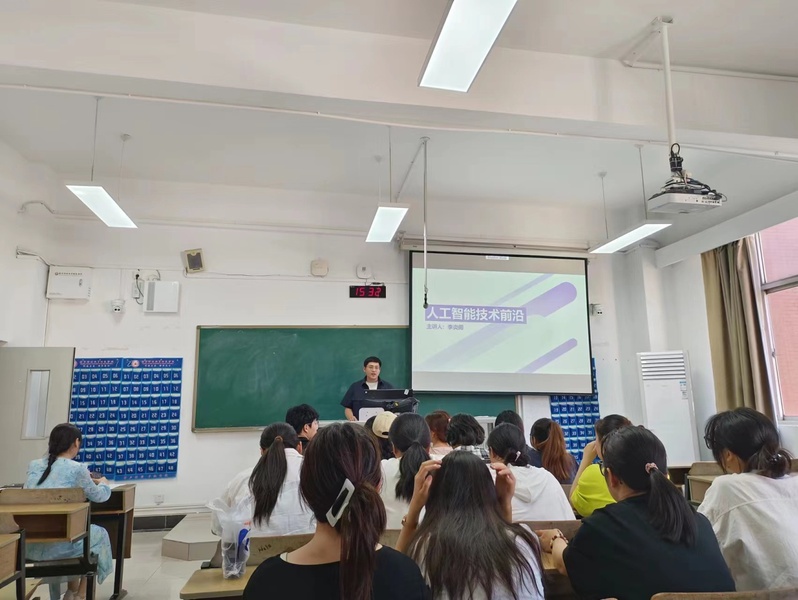 会议围绕人工智能的发展历程、人工智能技术的应用领域、前沿技术、潜在问题与发展趋势等主题展开。李博士给大家介绍了很多机器学习方法,通过手写数字识别的人工智能应用案例,介绍了卷积神经网络是如何实现识别手写数字的。指出目前人工智能的研究仍需解决数据集样本数量不足、不同类间样本数量不平衡、识别精度高但模型过于复杂等问题,以微表情识别为例进行了深入讲解。其次,李博士将目前较为热门的AI应用技术的四个方向分别进行了详细介绍,分别为大语言模型、AI绘画、AI语音生成和AI提示生成。最后介绍了所有前沿技术应用的前提,需要熟悉数据科学、机器学习和深度学习的基础知识,并且有较强的逻辑分析能力才能制定有效的提示。在2025年左右,相关的岗位需求可能会激增,也是由于AI不断地发展,在不同领域都可能会有不同程度的应用。李博士还网络连线到实验室,现场展示了ChatGPT的功能,员工们对ChatGPT的智能性非常感兴趣。