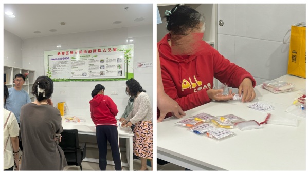 在残疾人辅助性就业加工工作室,参与交流活动的党员师生们与正在进行起泡网加工的残障人士进行亲切交流,详细了解他们在生产生活等方面的难题和困境。贾老师介绍到,起泡网加工是残疾人之家直接对接加工厂商,为街道内有兴趣、能参与加工的残障人士引进的加工产品。手工制作可以帮助残障人士锻炼手部动作、手脑协调,使康复与辅助性就业相结合,同时也为残障人士提供一个展示自我、实现自我、融入社会的平台。