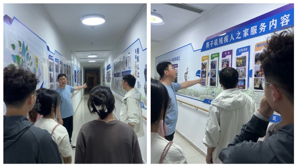 燕子矶街道残疾人之家运营负责人贾伟东老师热情接待了支部师生,详细介绍了燕子矶街道残疾人之家四位一体的社区康复、辅助性就业、日常照料、党建志愿服务模式。