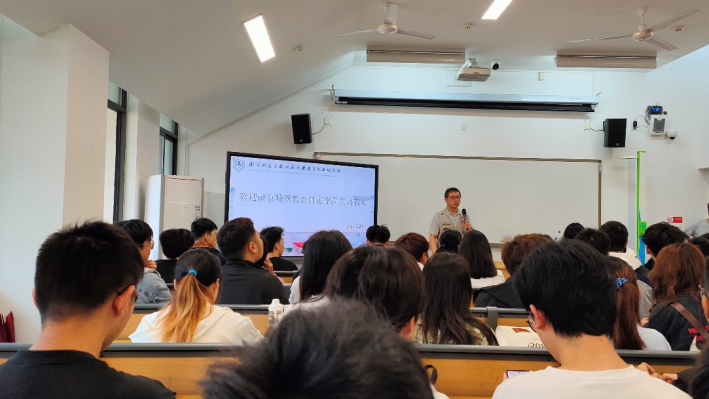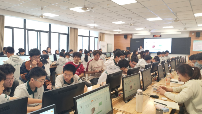 在讲座中,同学们在录播教室仔细聆听了王雅静老师和王俊贤老师为我们带来的讲座。两位老师分别向我们介绍了教学管理方法和新城中学的公司特色,使我们对新城中学有了更深入的了解和认识。