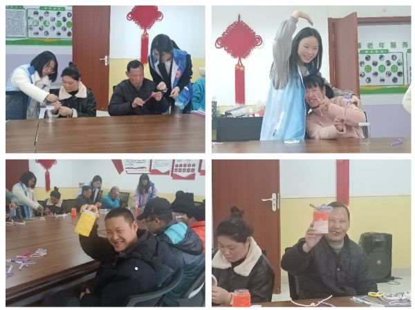 与此同时,志愿者们与机构学员一同进行空瓶改造的手工活动。面对一些较为复杂的步骤,志愿者们在了解学员的想法后,耐心指导,帮助每位成员顺利完成作品。在大家的共同努力下,每一位成员都成功制作出了属于自己的手工作品。