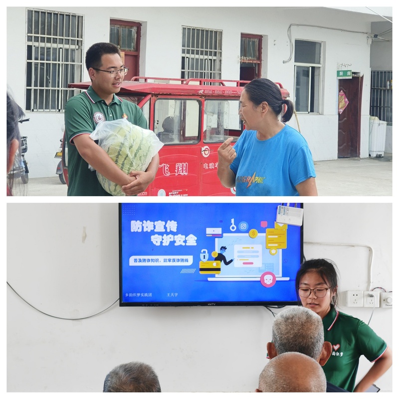 8月23日,实践团来到穿城镇百善堂养老服务中心。在这里,成员们为老人送上了精心准备的慰问品,并与他们面对面交流,询问他们的日常生活状况。成员王天宇针对老年人群体容易成为诈骗目标的情况,开展了一次“防诈反诈”主题宣讲活动。通过生动的案例分析,教会了老人们识别常见的电信网络诈骗手法,并提醒他们在日常生活中提高警惕。
