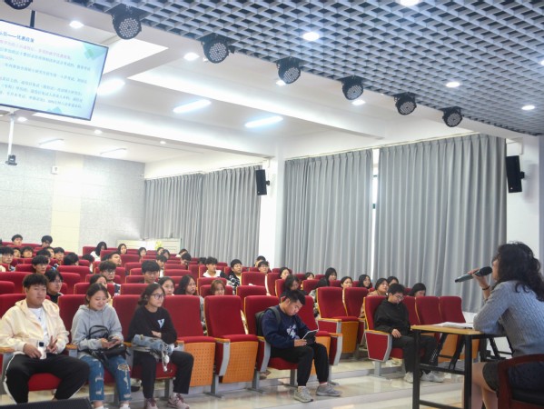 辅导员樊琬结合自己多年的员工工作经验,让同学们树立“要到哪里去”的生涯意识,把学习、生活、工作都融入到自己生涯发展的全过程。樊老师结合当下社会发展,通过自己所带员工案例,向同学们展示了未来职业生涯选择的多样性,强调生涯规划应该“应势而谋、因势而动、顺势而为”,鼓励同学们敢想敢为,脚踏实地,尽早明确自我定位。在互动环节,同学们大胆提问,热情展示,现场笑声不断。