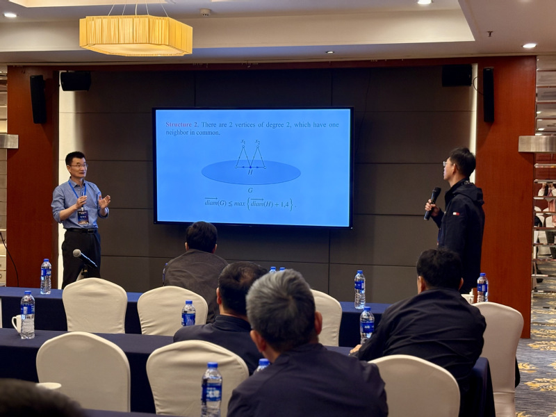 会议围绕图论与组合数学的核心议题,安排了多场高水平学术报告。浙江师范大学王维凡教授以“1-Planar图的结构与参数研究”为题,系统梳理了1-Planar图的染色理论与开放问题;苏州大学季利均教授分享了“Kirkman三元系大集”的构造与存在性研究进展,为组合设计领域提供了新思路;南京航空航天大学曹喜望教授深入探讨了交换群上凯莱图的分数重现问题,岳勤教授则提出了针对扭曲GRS码和Goppa码的高效解码算法,为编码理论注入创新动力。此外,南京大学陈耀俊教授、山东师范大学张霞教授、福州大学侯建锋教授等学者分别围绕图的定向直径、paraglider-free图的奇团子式、Hajnal-Szemerédi定理对四团密度等议题展开报告,引发了与会专家学者的热烈讨论。