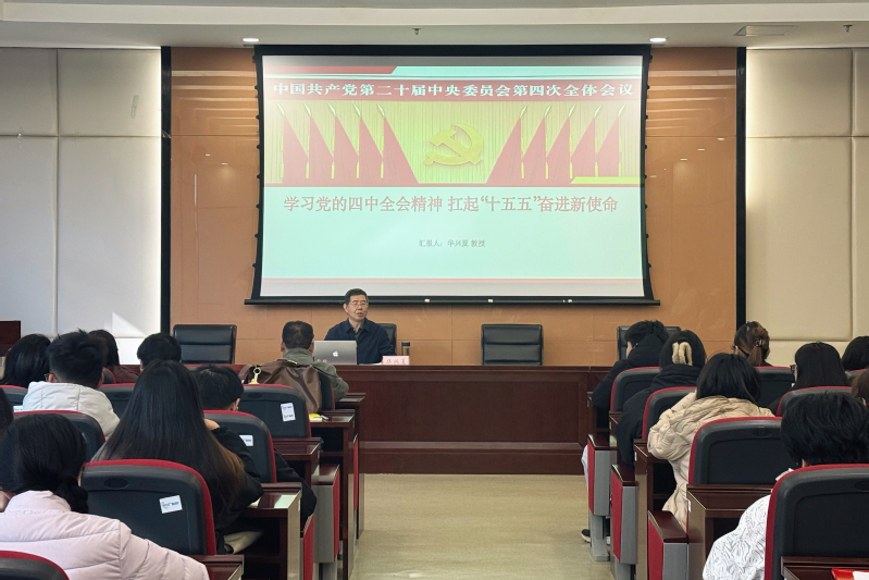 为深入贯彻落实中国共产党第二十届中央委员会第四次全体会议精神,不断凝聚思想共识,激发奋进力量,11月19日,华兴夏教授以“学习党的二十届四中全会精神、扛起‘十五五’奋进新使命”为题,为全院师生党员、党员发展对象及入党积极分子讲授专题党课。党课由党总支书记李贵希主持。
